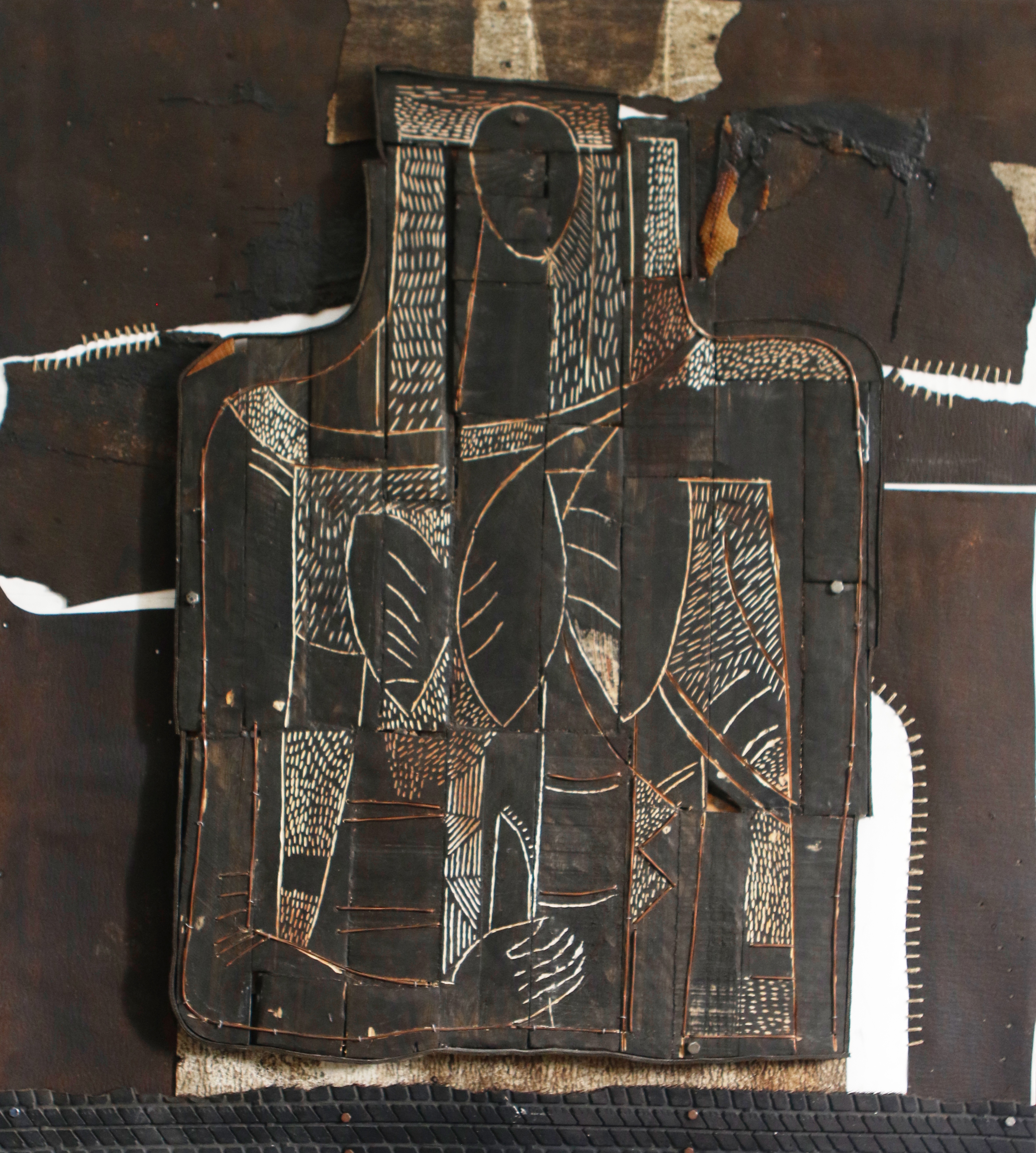 La impronta casi gestual, convierte estos petos protectores en artefactos que lindan con la abstracción y la figura, el artista ha aprendido a disfrutar el oficio como un juego con las formas. Hay en estas piezas un lirismo indiscutible, una belleza radical. Moisés se confiesa, aparece en su universo el “Soldador” de Adigio Benítez, aparecen las esculturas blandas de Louise Bourgeois, aparece ese sentimiento de otredad que lo embarga.