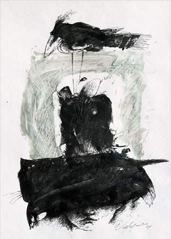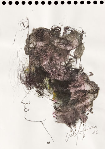 This time Agustín does not return to the gallery as the ceramist who loves technical experimentation, but as the author who expresses what he feels with the help of acrylic, inks, fabrics, dirty paper and cardboard. In the absence of the discipline that has earned him multiple acknowledgments in his work, he comments: Although this curatorial proposal does not include ceramic pieces, that does not mean I abandoned it. Before being a ceramist I learned to draw and to print, that is why I don’t like being pigeonholed. Ceramics is more docile and fertile to express what I want, that is why I will not stop making it, nor will I forget the remaining forms. I use indistinctly any one of them that helps me express myself.
