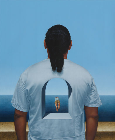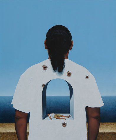 These transfigurations we discover in Alpízar’s work continue to orchestrate themselves like a game to dissect history, this time under cover of the landscape and the self-representation. The scenes undoubtedly belong to the urban milieu; some of them, however, have a cosmologic breath, particularly when the artist becomes that Icarus that relapses into utopias. Our attention is drawn by the way in which he has become a being that gives faith of the tensions of an age, making use of his own corporal space. In his manoeuvre with the portrait theme in the series The Taste of Tears, the artist time and time again faces the sea, and that sea is horizon and frontier, just the same as circumstances and each distinctive quality are. In that intimate space of freedom where thought expands, one may choose between jumping, flying, remaining; in those ordinary crossroads of social oscillation that Rubén Alpízar insists in condensing like substances of his body. Let us hope that when he consciously discovers that knocking down along the road already apparently of no return of the many daily cases of violence in which we see him as Saint Sebastian, with swords almost reaching his skin, it may still be possible to revert the processes that have originated these parables of a present located as our own.