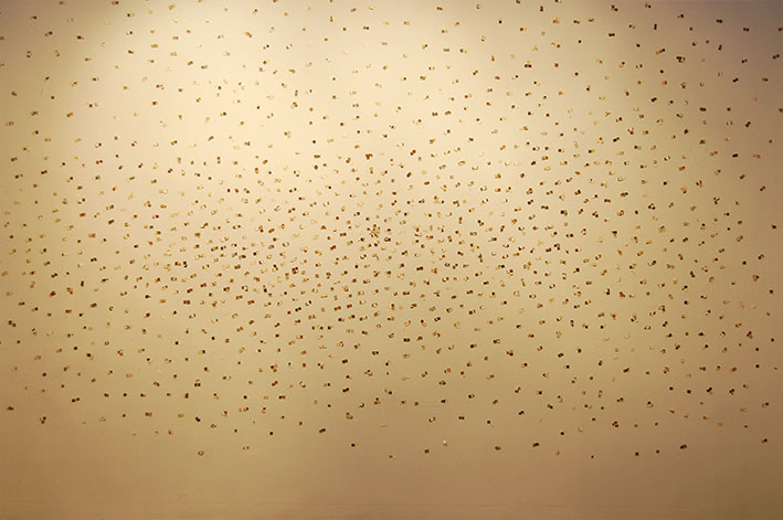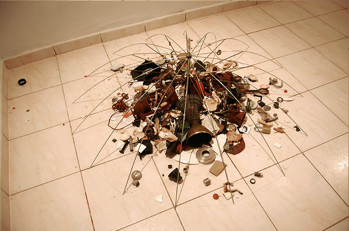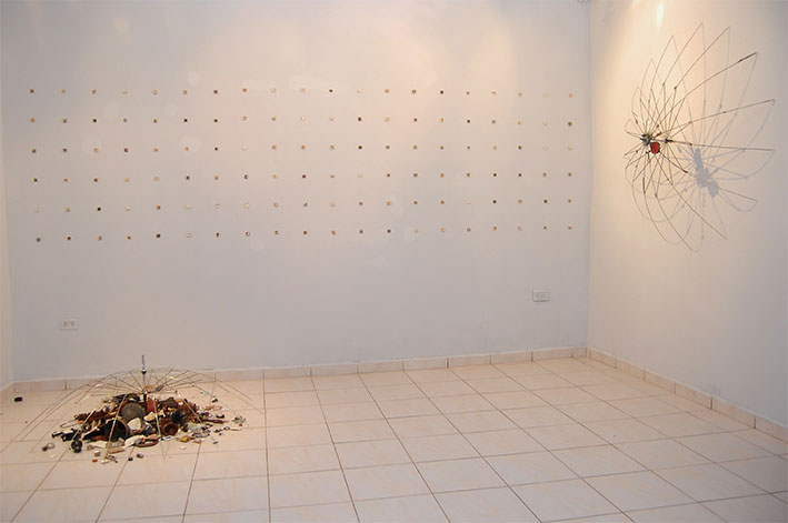 Durante su existencia, un individuo se relaciona con un número ilimitado de objetos, sobre todo en el mundo contemporáneo, donde poder es muchas veces sinónimo de poseer. No obstante, la necesidad del hombre de acumular, tiene además implicaciones más introspectivas. El objeto también puede ser asociado al recuerdo y su función radica precisamente, en convertirse en detonante de este. Entre la sombra y en la pared pone de manifiesto las obsesiones que han venido acompañando el trabajo precedente de Fors, el fragmento, la acumulación, la relación nuevo-viejo. Cuestiona la necesidad humana de “atesorar” artefactos que han perdido su funcionalidad, ya sea porque estén dañados o solo fuera de moda y que conviven extrañamente con otros más nuevos y más eficientes. Así, hace referencia a la manera arbitraria y aleatoria en que los objetos, que en esta muestra son a la vez partes y todo, se mezclan y se contaminan dentro de un mismo universo, como metáfora de la vida y la memoria.