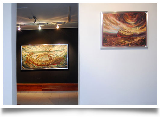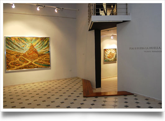 Él regala, con magistral hechura, una narración compleja y barroca, con una síntesis que nos obliga a imaginar lo no representado o, a la inversa, representar lo inimaginable. Nos enfrenta con lo indescifrable, lo oculto -que a veces es evidente-, y entremezcla para construir sus juegos pictóricos muchos elementos, lenguajes y una manera de pintar que dialoga con la gravedad. En Vicente Hernández, graduado de Educación Artística en el Instituto Superior Pedagógico Enrique José Varona, tanto cuando recurre a la horizontalidad como cuando lo hace con la verticalidad, o como cuando incluye los tonos, hay un ascetismo y un simbolismo que nos deja perplejos. Una obra permite invocar y transmitir ciertos juegos que son sencillos y la gente de alguna manera entra en ese mundo ficticio. Porque en el arte, una parte es ficción y otra es real. La de ficción es la que evoca en cada individuo un camino en su proceso de imaginación. La realidad es la que constantemente vivimos de manera cotidiana. La capacidad del artista para cifrar en símbolos sus ideas, la enorme voluntad de trabajo y su potencia estética, permiten analogías múltiples. Las referencias a otras civilizaciones, más allá del conocimiento que presupone, nos llevan a comparar, a añorar, como siempre el pasado y le sirven de pretexto estético. Su obra nos obliga a estar claros en el aquí y en el ahora. En apariencia intemporal o atada más al pasado extinto, sus piezas cobran vigencia y contemporaneidad. El interesante contenido expuesto a un solo golpe de vista, así como la presencia, al mismo tiempo, de lo remoto y actual, nos remonta a la mudez ante sus trabajos y resulta embarazoso no cargarlas de interpretaciones en una época en que parece necesario explicarlo todo. ¿No es mejor el silencio al que invitan sus obras para que las acompañemos y las sedimentemos internamente como se hace con el ARTE en mayúsculas? Ellas nos hacen sumergir en los adentros, hacen pensar y hasta intrigan en su desgarrador misterio. Se saca una conclusión: hay algo más que aquello visible e imperecedero.