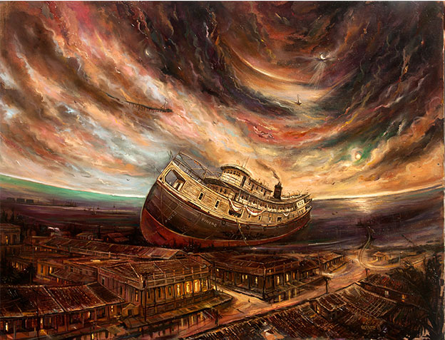 Para hablar de su quehacer artístico hay que armarse de todas las municiones posibles para conquistar hasta sus más caros sueños, esos que deambulan también por las historias tejidas con el óleo, y hasta «conocer» los más disímiles lenguajes para alcanzar la mayor cantidad posible de palabras/hechos/situaciones que se agitan en ese inmenso océano pictórico donde se barajan muchos conceptos como el tiempo, los ciclones, el mundo, el mar, la vida, el cielo, Batabanó, y tantos más.