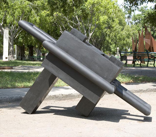 Standing before the piece by Tomás Lara, for example, we succeed to identify, as suggestive duality, the eternal counterpoint between industrial and inborn. Here is a proposal, whose undeniably virtuous making, its arrogant structure and its monochrome soberness transparent that important dose of judicious premeditation that distinguishes the sculptor in the consummation of the controlled volume. But it will not take long before the sourness of the structure, its strength, its superb manner of involving and submitting the space appear, warning us then that it is precisely in that challenging gallantry where the best of his aesthetic expression resides.