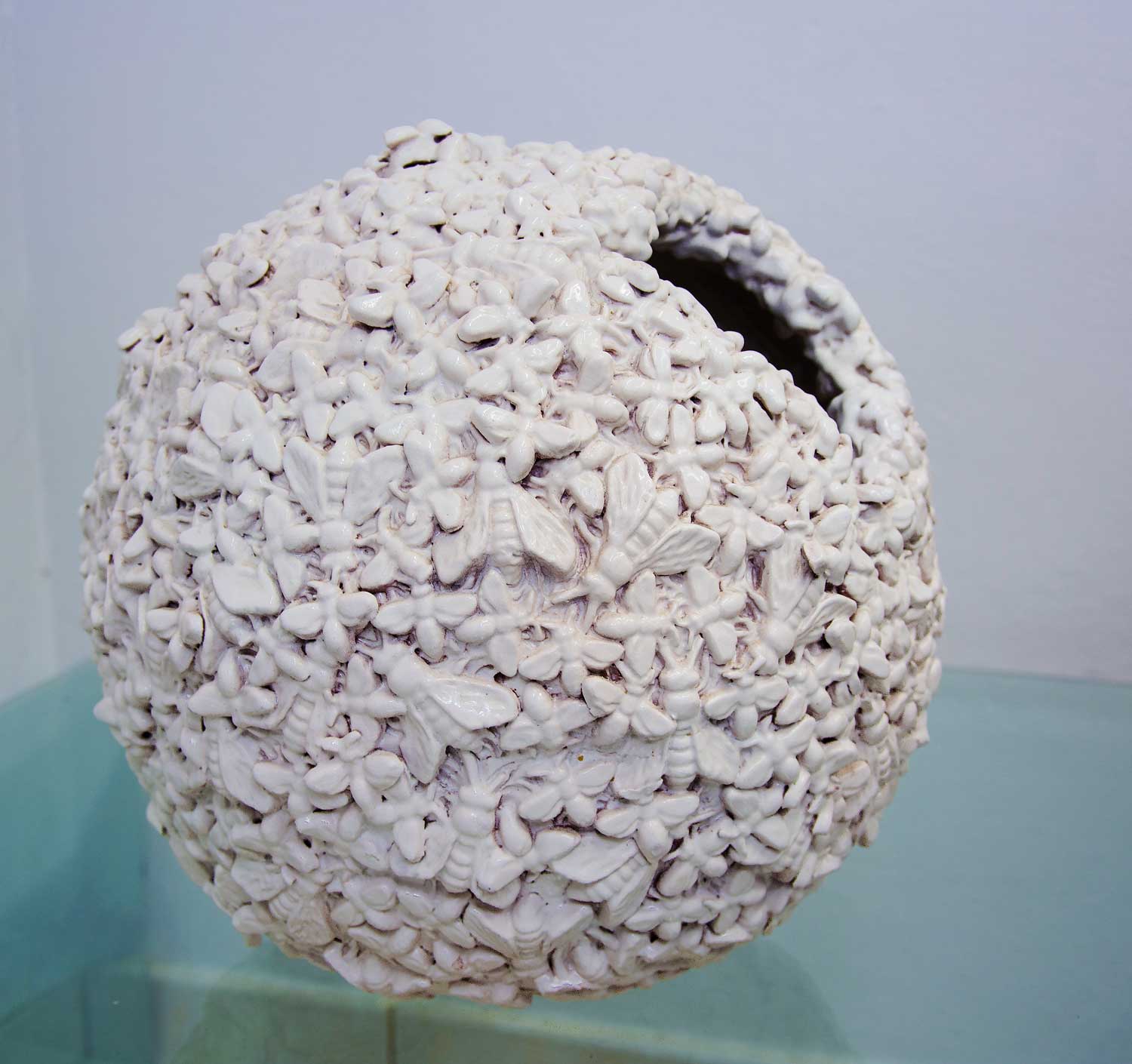 The manual effort prevails, meticulous in extreme, in the identity of each work. Adriana is distinguished to approach the creative act through occupations, procedures and lightly disjointed traditions of the artistic thing, such as the goldwork, the seam and the pottery. The material registration to which appeals supposes for if alone the demythologization of that that of grace in its multiple meanings means. It prevails along the exhibition a falsified idea of sumptuosity and fullness, accord to an essentially cynic posture. The gaza, the golden reinforcements, the nature degraded by the resin and the clay, the profaned splendor of the laurel; all that it happens it overflows death and artificiality, making us feel to the stalk of the septic thing. Optics that rotates around the metaphysics and it questions the even unbeatable wonder of the World of Platon’s Ideas.