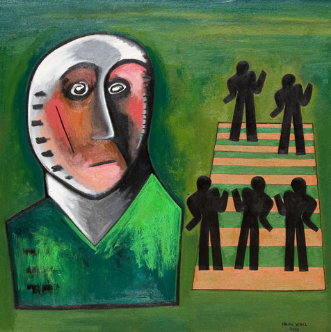 Ever since the artist made a name for herself in the decade of the seventies until our days, nothing or no one has made her renounce to the expressionistic manipulation of the human physiognomy. When she decides to halt along the way it is precisely to gather new formulas and skills, the way it happened with the series of earthenware and tiles in the eighties. Long before we realized the allegorical functionality that this trend might have in the turn-of-the-century conceptual painting (with that whole theory of the return to the craft and to the genres), Hilda had already become a true paradigm together with her husband, Manuel Vidal. Paradigm that as almost all of us know was additionally imbued by the spirit of a secluded, ascetic existence whose only tolerable luxuries were drawing and poetry. Trying to understand how the expressionistic figuration of these two creators continued to seduce us; how, in spite of the years, their simple, uninhibited, harsh characters had not lost one bit of vitality and impact, I gradually came to the conclusion that the key lies in the ontology of the themes incarnated by those figurations, in the power of synthesis with which both artists present the deductions of their deep inquiries; that even though their works follow art concepts and ethical and philosophical premises of the past, they still have not arrived to the safe port of their futurity.
