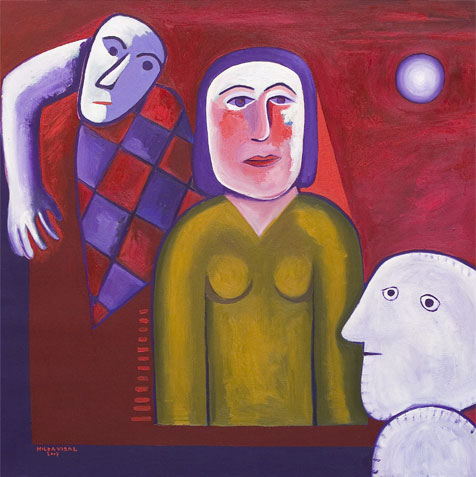 The lack of restraint, the flexibility of Hilda Vidal’s compositional solutions, the ductility of the iconographic arsenal she has defended up to the present; the subtlety with which she seduces us and takes us from the apparent to the impenetrable, from the earthly to the metaphysical, have been strategies that have helped her avoid the setbacks of the art milieu Although I wonder if those setbacks ever truly worried her; if her acting followed a plan to counteract them or if she succeeded in doing it just following the dictates of her own conscience. However, I think it is in the born capacity of her painting to interrelate mistrust, puerility and sarcasm that the creator has found her best alibi, the alternative to protect herself from futile interpretations or historical reductionisms.