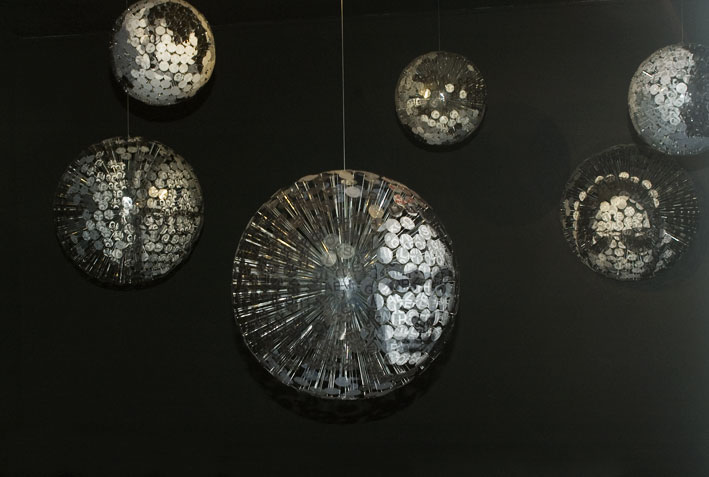 Perhaps Mabel Poblet is the only artist in this exhibition that cannot be considered an engraver in its full wide sense, even though serigraphy is the essential base of a large part of her work. In this exhibition the artist again avails herself of this technique to construct a complex network of social and power relations. From the self-referential nature that characterizes her entire work she gives way to the construction of a discourse of strong humanistic content that irrupts with the individuality of the unique and solitary being. We are part of a mini cosmos where all our actions count, are transforming ones and we respond for them.