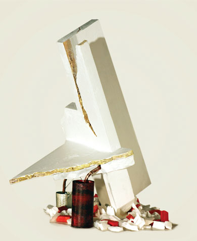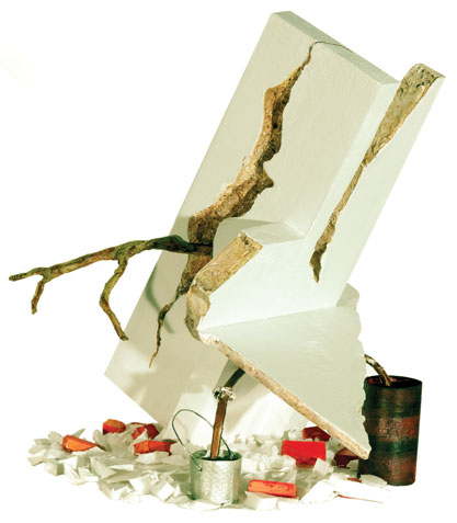 Gelabert Soto seems to be aware of these expressive possibilities and influences that art exerts on the spectator. For him creation is a provocative act that in his case is taken to the limit when using the abject as an object of representation. The waste, the destruction, are elements with which it builds its pieces. In this way it disrupts value judgments through art, as it aesthetizes what is repellent, whether by social convention, ethical precepts, or some other similar criterion. In an era where everything goes, where any object or fact is susceptible of becoming art and a society whose laws are based on consumerist patterns and the law of waste is established as a patron, short-term utility makes it proliferate as an ideology of life that of substitution, and that a culture of waste, of unusable accumulation, is generated. Then, the idea of a large garbage can could function as a quasi-epithet to define the contemporary world. In works such as El Desagüe, 2011; The Pipe II, 2011 appear re-created with total level of reality elements such as human excrement, food debris, fat. These pieces are a reference to the balance of consumer behavior, but they may also have a certain affiliation with postulates of an ecological nature. On the other hand, there are other works where the unpleasant is objectified in another way, perhaps less obvious but not less effective. In El Sitio, 2011 and La Salida, 2011, it becomes manifest through the cracks, the destruction, the alteration of the equilibrium that results from the order of a state of affairs. However, this embellishment of the abject is done through a resource in which another criterion that is also distinctive of these times, the simulation, is put into play. Very few of the objects that are part of the pieces are taken from reality in the manner of ready made, but they are constructed using a very refined technique to corroborate what Aristotle said in his Poetics, about the possibility of realizing the beautiful imitating with mastery what is repulsive. The receiving experience of the spectator is thus manipulated by the possibilities of art to sweeten everything that in life is acerbic.