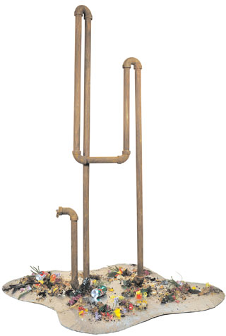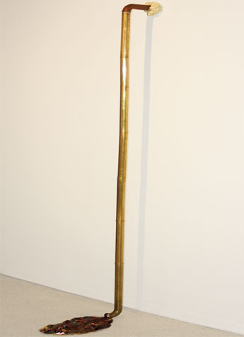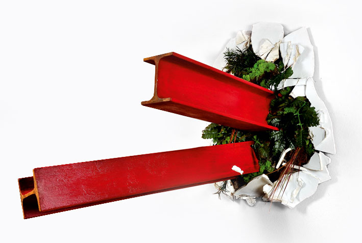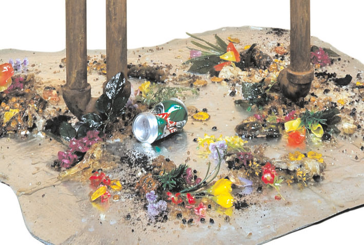 The link between the real and the artificial is a suggestive element that should not be neglected. His works are perfect imitations of elements of reality. This raises a question about where are the limits between one and the other. A human excrement is treated with so much level of realism that the viewer is not exempt from doubt. In fact, I would dare to say that it is one of those that lead sculpture to the realm of sui generis realism, bordering on theatricality or hyperrealism, if you will. His work seems to work as an effects game. The perfection of forms, the mimesis makes the viewer think that he is facing a real event, a collapse, or a spill, as he likes to call the dumps through which all kinds of human and urban waste come out. However, he does not hide that his works are recreations of reality, do not bother adjectives such as deceitful or the fact that the tubes are too shiny, because these subtleties provide other reading possibilities. The fact that the artist does not acquire all the elements that intervene in the pieces of real drains or garbage dumps; neither the beams are made of metal, or the walls belong to a collapse that actually happened, but they are (re) created using construction materials, varnished wood to simulate the iron of the beams, resin to resemble grease and artificial plants, is a way to generate in the spectator the so-called suspicion syndrome. Hence, fiction and reality are incisively put into question, just as the perceptual act itself, an act that as experience, is totally subjective. Gelabert makes it very clear that it is not the same true as it is plausible. In this way, his works are a resemantization of Povera art, mixed at the same time with minimalism and conceptualism. However, their concerns are not channeled solely to art itself, but are of various kinds and encompass both the artistic and extra-artistic. It could determine ideas such as, for example, the balance of consumer behavior of contemporary society, which is otherwise linked to other aspects of ecological issues, the tendency of man to self-destruction (as a species), or other less obvious aspects how could be the finite character of the processes, or the conception of the fragment as conformer of an identity, which is, in turn, the dialectical summation of other identities.