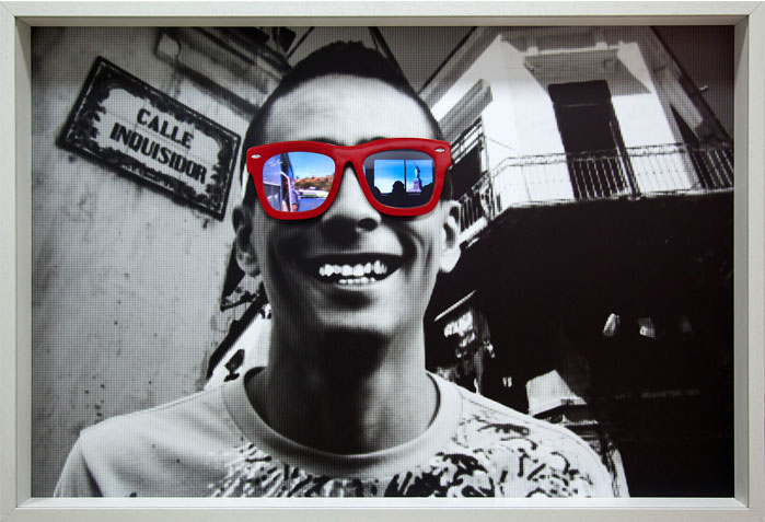 Ernesto Javier is not content with only the force of the image, since he establishes other novel relations with it in the midst of a technological and at the same time poor context. Hence the fact that they evoke, recall, not only the theme or the subject that makes them identifiable to any spectator, but also that they operate as messengers of a close period of time, of a past that systematically corrodes the present. Photography is now an object that illuminates and kills, like José Martí’s star. Having eliminated the traditional wooden or metal frame that generally contributes to highlight the image in its full splendor, photography now conquers a new space halfway between the private and public spaces, a “no man’s land” where the theatrical, constructive and sculptural elements plus installation articulate as principal pieces of a puzzle whose outcome we ignore. The images are part of a much wider visual discourse that uses them for diverse purposes, not just esthetic or reflexive.