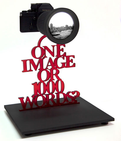 Ernesto Javier is a constructor of memories, a designer ready to exalt us by means of evocations and reminiscences, and who will never forgive our lack of memory in these times when everything is fleeting, when everything vanishes as if by magic into the real and virtual of existence. Although his images mix formally with neon, lights, plastics, wood, metals, they remain headstrong in our perception, but above all in our memory although the spectator did not share the experience with the photographer. If his form of exhibiting, disseminating, conveying them is through objects constructed by him, he confirms with it his detachment from the traditional reportage and the discovery of a new type of photographic essay linked to the present multi-disciplinary craft, without need of proclaiming it today as happens with some creators (who despair to make it quite clear and in a loud voice), clinging to such an old idea, attitude and behavior.