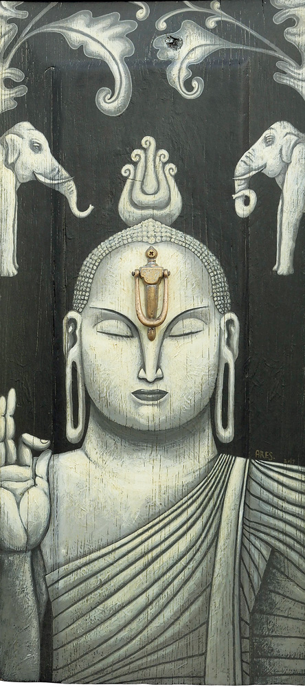 Acrylic and metal on wood. 70 x 32 x 3,3 cm