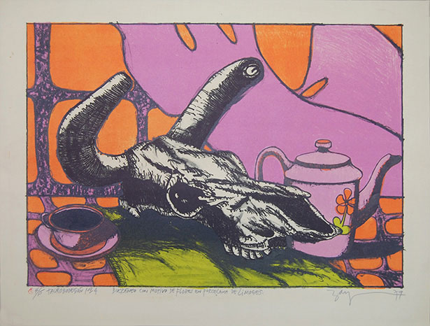 No. 4 Bullskulk with flower motives in limoges porcelane Litography, Ed. 4/15 40 x 54.5 cm
